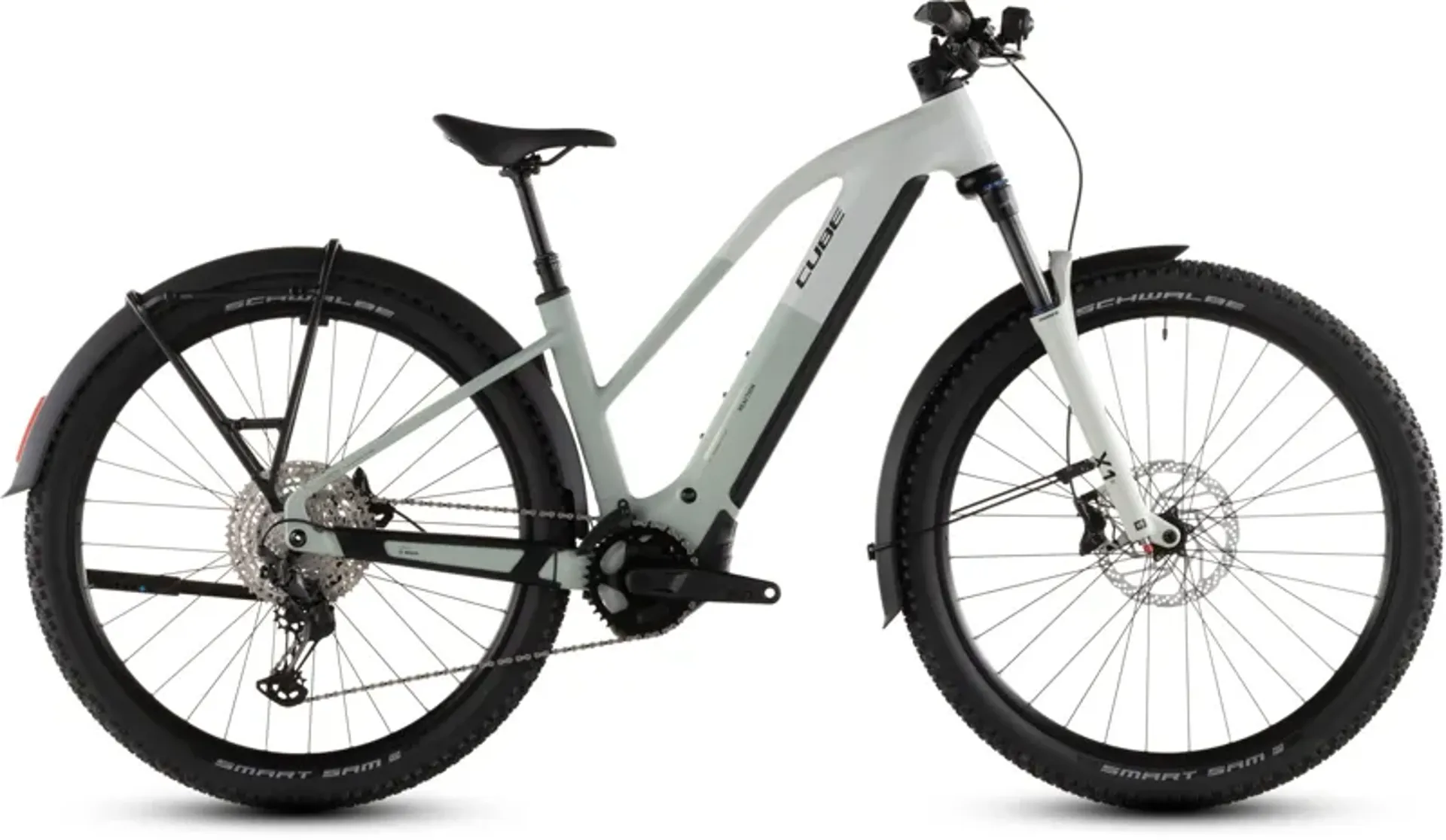 The Reaction Hybrid Pro FE combines the versatility of a fully equipped tourer and the ruggedness of a mountain bike, with added Bosch power. The mudguards, luggage carrier, kickstand, and lights are just the start. You can also tackle any route, off-road or on, with ease thanks to an 800Wh battery and powerful Bosch CX drive. Combined with Shimano's easy-to-use XT 12-speed gears, it's all you need to comfortably ride any hill. For coming back down the other side, strong Shimano 4-piston hydraulic disc brakes and grippy Schwalbe 6.6cm (2.6") tyres are fitted. There's also an air-sprung fork with 120mm of travel (100mm for small frame sizes and for all Easy Entry models), and a remote dropper seatpost for extra comfort and control on rougher trails.