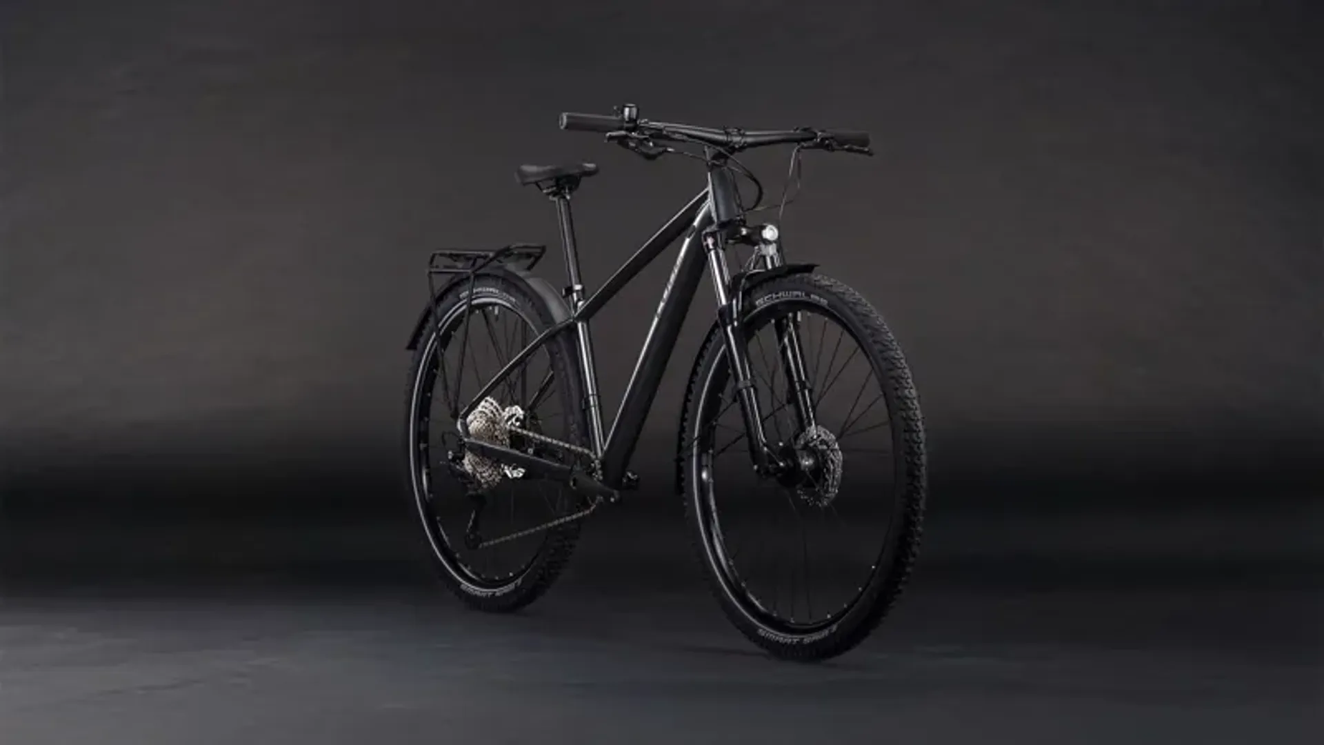 Mudguards, a lighting system, kickstand, and versatile luggage carrier give you the tools you need to take on the weekday commute or a dash across town. Meanwhile, the 100mm suspension fork, Shimano Deore 1x12 gears, Shimano hydraulic disc brakes, and grippy Schwalbe 6cm (2.25") tyres are all you need to keep on riding when the tarmac ends. CUBE's Size Split system means there's a perfectly proportioned Aim SLX FE for every rider. It's ready for anything.