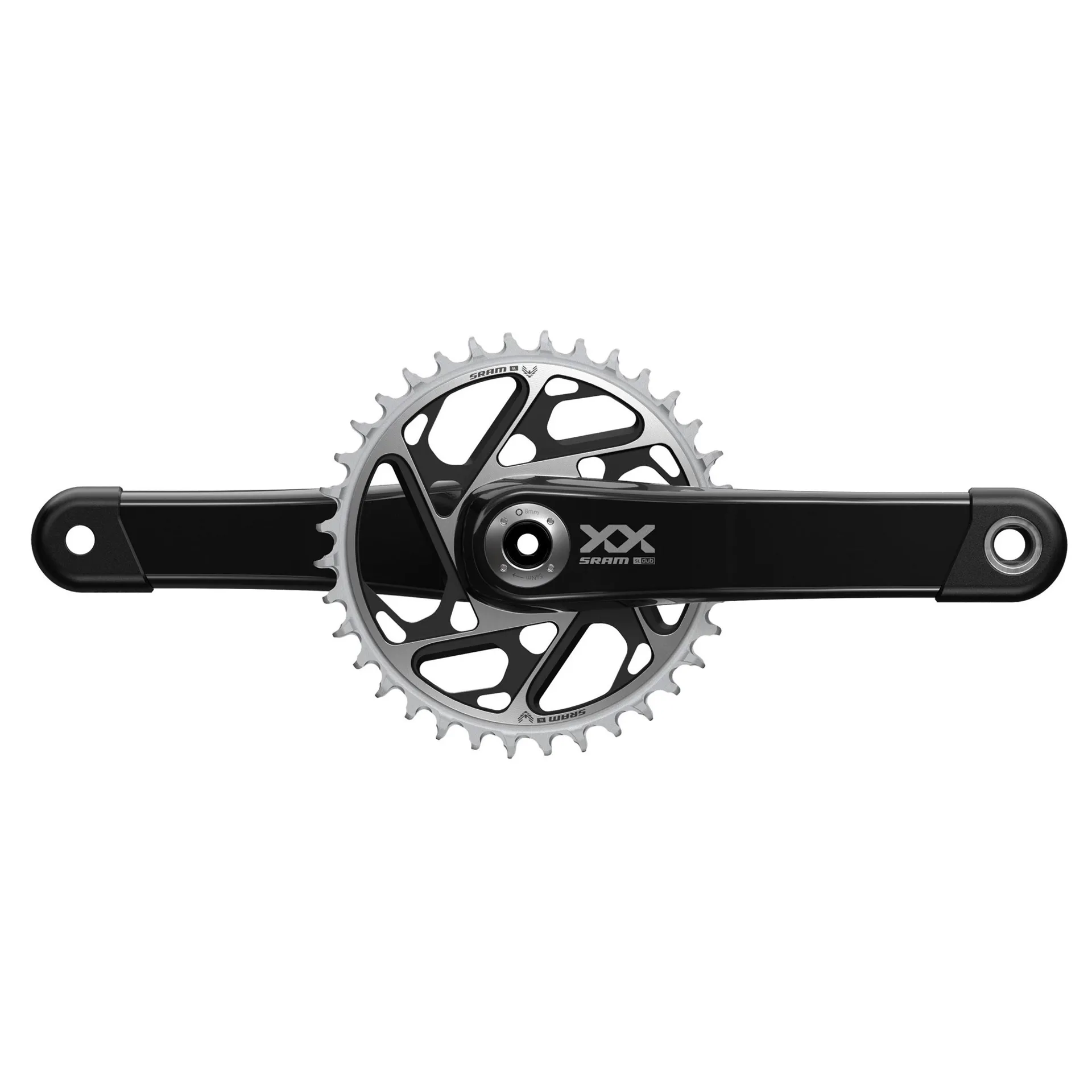 With multiple World Championship medals, EWS series wins and Olympic gold medals to its namesake, the XX Eagle DUB Crank is proven as the pinnacle. Inside, it has been engineered with an ultra-strong but ultra-light design that utilizes carbon fiber with a hollow core – still the lightest ISO certified crank on the market, maximized for title winning stiffness. Now pair it with the remarkable new XX SL Eagle Transmission (T-Type) direct mount chainring, and the spotlight turns from its performance to its appearance, because it absolutely looks like nothing you’ve ever seen before.